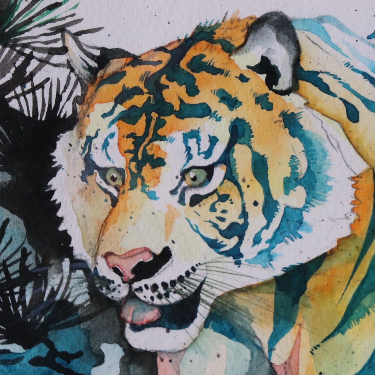 発色の良いミジェロ水彩という絵の具を使用していますので、全体的にはっきりとした色合いです。